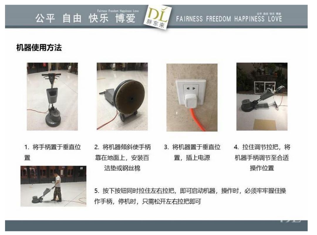 同样的领域,同样的追求也上演在胖东来的卖场,但你并看不到,因为他们只工作在晚上和周二,对卖场的地面及各个角落进行专业的清洁、打磨和保养。当我们感叹胖东来的地面为什么一直这么明亮而干净的时候,正是因为有这样一个专业的团队在做专业的事情,坚持不懈的去做。