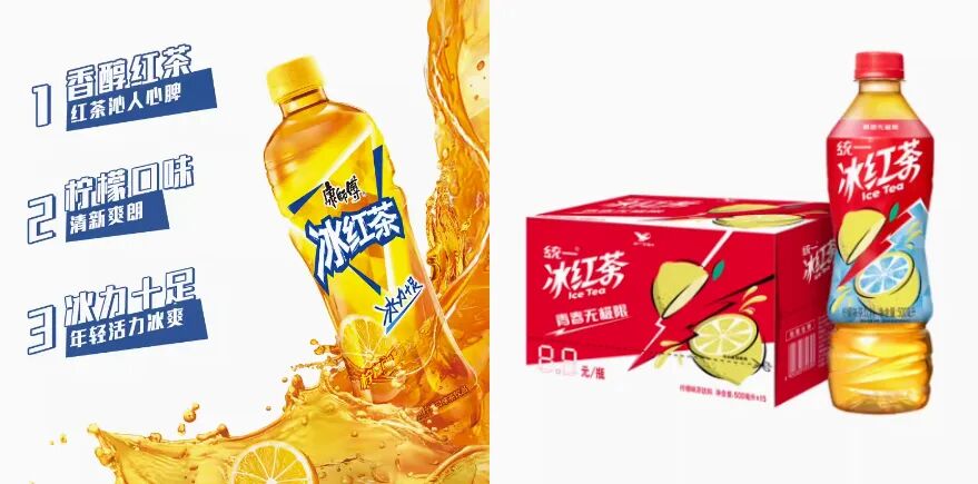 “旭日升”冰红茶的配料表包含水、白砂糖、红茶粉和香精,同时还添加了二氧化碳以增添口感。而水、白砂糖和二氧化碳是可乐的主要配料,因此从产品属性上看,“旭日升”冰红茶与可乐差别不大。[5]但因凭借“茶”这一中国消费者心智中天然具有好感的属性,以及“民族品牌”的加持,“旭日升”的销量在1996年达到5亿元,在1998年达到30亿元。此后,统一、康师傅和娃哈哈等企业纷纷效仿“旭日升”的做法,推出了自己的冰红茶产品。然而,由于管理不善,停止铺货,在二十世纪初的“冰红茶”、“冰绿茶”竞争中,“旭日升”失去了原本的市场地位。与此同时,掌握着优势渠道的头部企业逐渐崭露头角,康师傅、统一等品牌此时出现在大众视野中。时至今日,康师傅占据着即饮茶市场品类第一名的位置。[6]