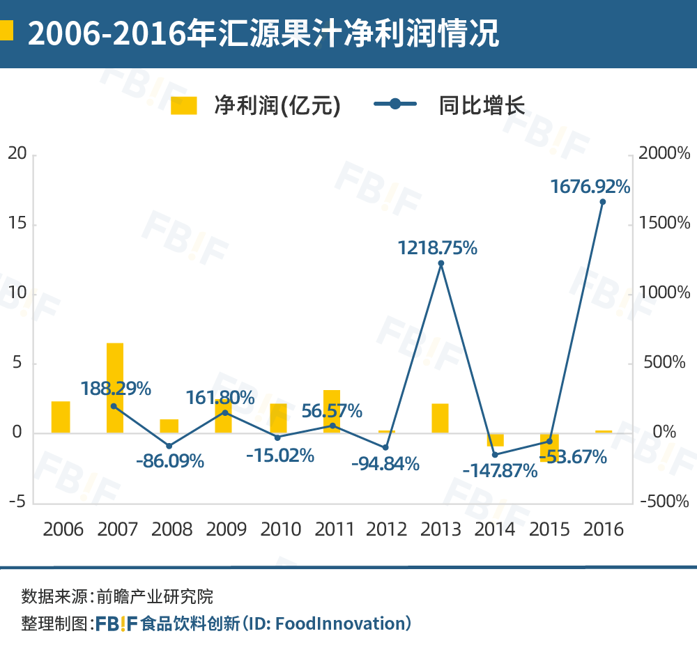 果汁市场发展的势头一直保持强劲增长状态。2006-2008年间,果汁市场的年复合增长率约为18%,2008-2015年虽有下降,也依然维持在7%左右。然而,自16年起,果汁饮料市场的规模逐渐萎缩,2015年-2021年期间,果汁饮料市场的年复合增长率为-1.6%。[2]早期作为果汁饮料代表品牌的汇源、统一等在这一时期都开始停滞或衰落,2012-2016年汇源果汁多次出现亏损 [10];2015年-2016年统一果汁营收额甚至下降了41.5%。[11]