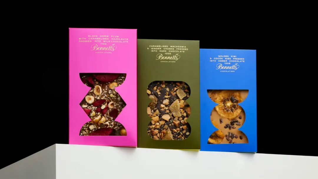 2023年,几何形状开始在包装设计中崭露头角。设计师们逐渐认识到包装不再仅仅是关于色彩搭配和排版,同时也包括各种各样的几何形状设计,这些几何形状成为了包装设计的核心要素。特别值得一提的是窗口镂空设计,它不仅仅可以用于展示产品,还成为了动态的设计元素,使商品与品牌美学融为一体。Hey Studio创始人兼创意总监Verònica Fuerte分享到:"几何、简单的形状适泛用性强,是一种偏向大众化的风格。它易于被消费者接受,同时也可以很时尚。"Bennetts是来自新西兰的手工巧克力品牌。Seachange为其设计的包装为产品增添了华丽感。产品包装上独特的几何切口,不仅能帮助消费者一眼看清放置于其内的巧克力产品,同时还与产品一起形成了类似于画框的效果。此外产品包装还添加了金色装饰,并使用了充满活力的色彩进行搭配。而Heartbeat Hot的美学虽然简单,但也有着很强的吸引力。酒瓶正面有三个垂直排列的正方形,顶部的正方形采用了明亮的黄色,中部突出了柔和的浅橙色,底部是深沉的橙色。在底部的正方形内,简洁的无衬线字体直截了当地标明了"Hot Rosé"和"HEARTBEAT"。HEARTBEAT的创始人Kristen Knapp分享:"在烈酒行业,你可能会常看到几何图案的应用,但葡萄酒则是多以字体设计为主的品类。而我想要的产品设计,需要能让人们在20英尺外就立刻辨认出这是HEARTBEAT的产品。"![]()