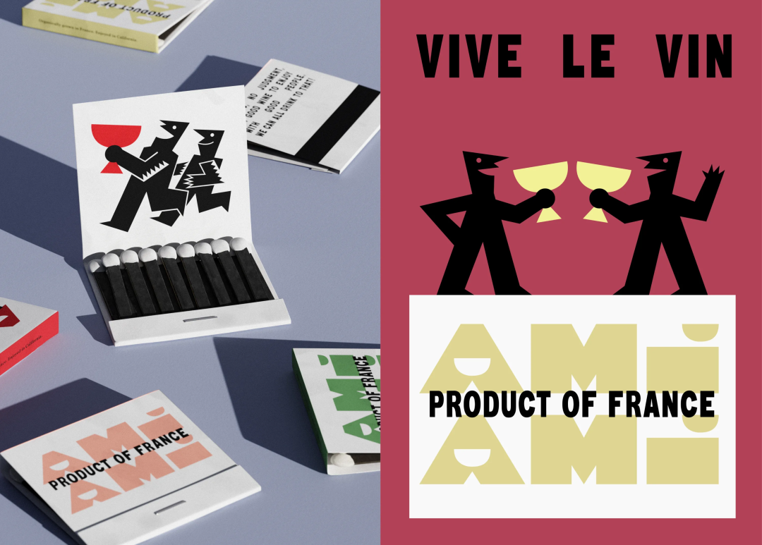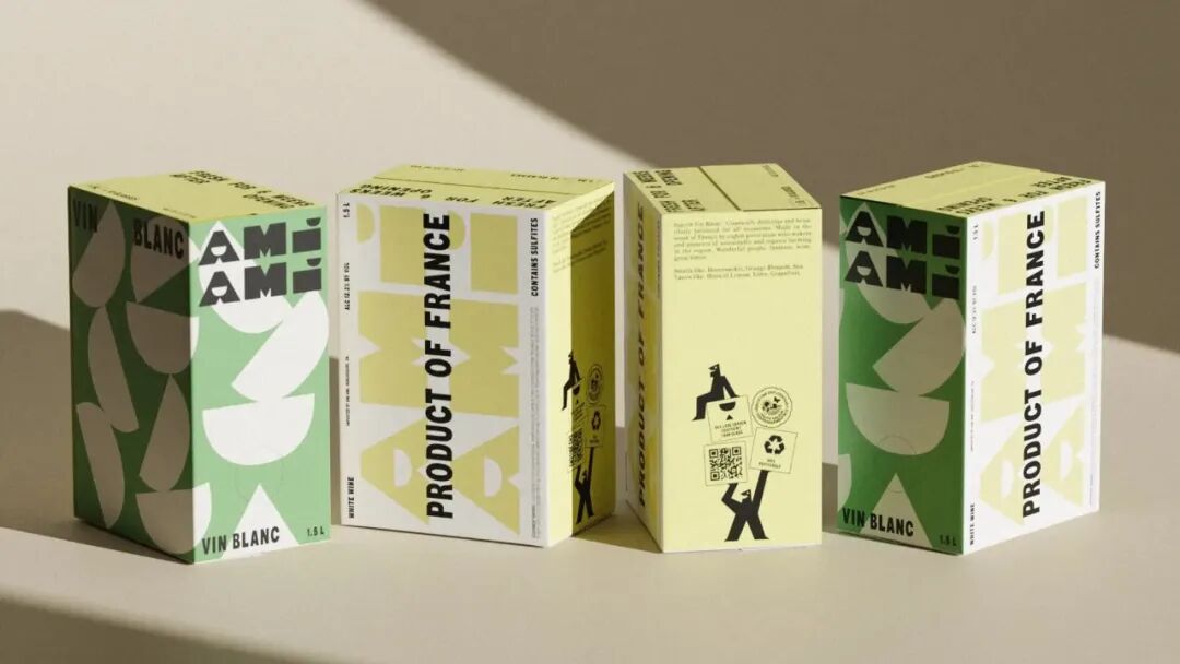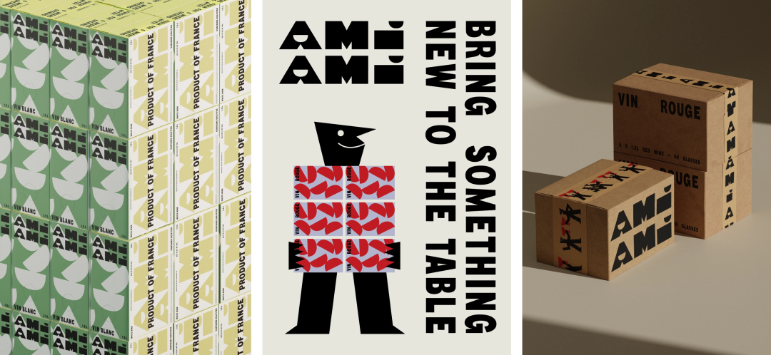 Le Ruse Wine以色彩和字体诠释了上世纪二三十年代的复古风格。而Ami Ami则选择从几何图形出发,彰显装饰艺术风格。Ami Ami盒装葡萄酒的包装由Wedge 设计,半圆标志代表着一杯酒,十多个半圆无序覆盖着包装盒的多个面板,增加了立体感;而俏皮的插画则源自意大利艺术家Fortunato Depero上世纪20年代的作品,具有浓厚的现代主义气息。![]()