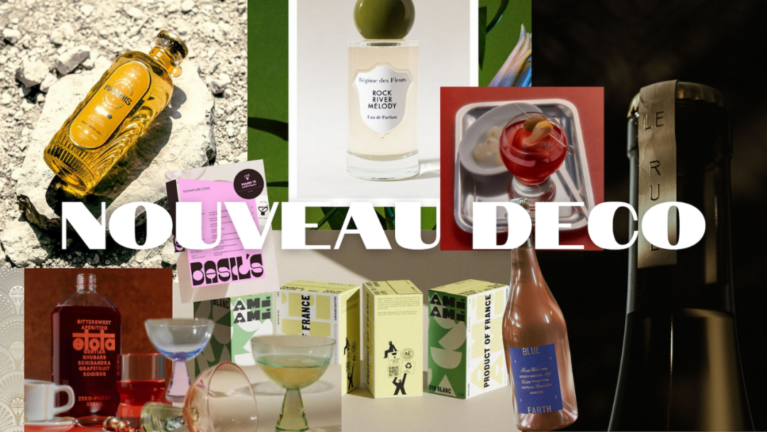 新装饰风格将上世纪20年代和30年代现代主义美学的夸张几何形状、丰富色彩等与现代元素相融合,创造出新颖奇特、吸引眼球的包装系统。这种装饰风格既满足了消费者对过去的渴望,同时平衡了现代的视觉效果。装饰艺术风格的设计首次在20世纪20年代和30年代蓬勃发展。20世纪初,受到现代主义的影响,美术设计领域也迎来了变革,抽象几何图形、丰富夸张色彩备受艺术家的追捧。而如今这种风格正在为现代包装设计重新注入一种优雅的魅力和奢华感。Dieline在报告中指出,当下,消费者对所有复古和经典的事物都表现出浓厚、持续的兴趣,常常在产品和体验中寻求怀旧之情。新装饰风格以各种复古的图案和色彩元素,让消费者能够沉浸在一个以魅力和奢华著称的时代,为消费者提供逃避现实的机会。而现代元素的融入又不会让消费者迷失在复古怀旧的情绪中。在全球经历了多年新冠疫情、经济遭受重创的后疫情时代,消费者的心灵也已千疮百孔,变得更加敏感脆弱,而新装饰风格恰巧契合了这个时代消费者的心理需求,成为一种新的趋势。Ami Ami、Etota、Renais Gin和Le Ruse Wine等品牌都已经窥视到了这种趋势并在其产品的包装设计上将这种趋势体现得淋漓尽致。Le Ruse Wine由Studio MPLS设计,是一款“朋友和家人的招牌酒”。Studio MPLS在压花标签上装饰精致的镀金细节,兼具奢华与留白;搭配Hoodzpah的 Santa Ana Sans和My-Lan Thuong 的 Carta Nueva 字体,散发着浓厚的复古风。设计师Schoepf表示,Le Ruse Wine很好地平衡了传统和现代元素。Le Ruse Wine共有三款包装,分别为蓝色、赤土色和沙色。它的包装融合了箔纸、压花、字体选择和调色板,为消费者呈现了一个兼具奢华与普通,复古而又不失现代化的瓶子。![]()
