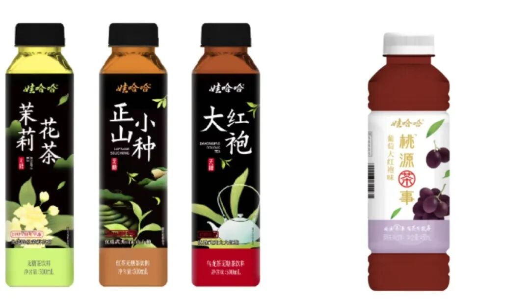 或许正是看好品类的发展机遇,2024年娃哈哈将继续发力无糖茶,推出茉莉花茶、青柑普洱茶、大红袍、正山小种四个口味新品,其中正山小种选用世界红茶发源地武夷山茶叶原料,传统烟熏工艺、自带桂圆甘甜果香。另外一款茶饮新品名为“桃源茶事葡萄大红袍”,该新品是一款果汁茶饮,既有浓郁的茶香,又兼具果汁的清甜。