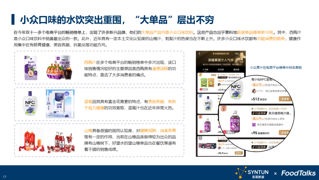 (三)小众口味的水饮突出重围,“大单品”层出不穷