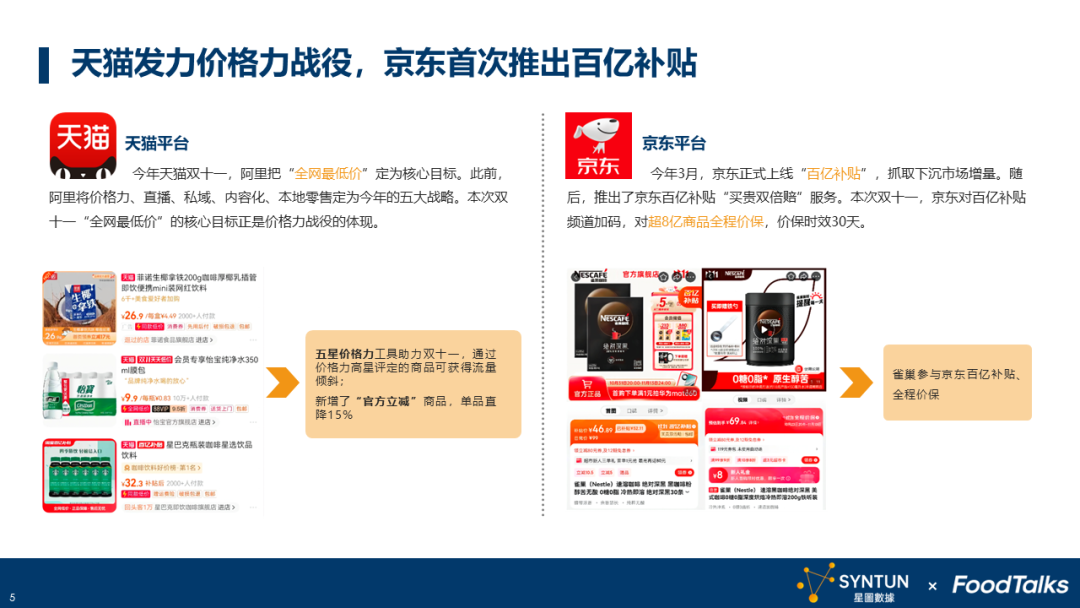 今年双十一,天猫、京东、抖音、拼多多均采用“百亿补贴”的降价策略,推出官方立减、买贵双倍赔、单件立减等官方补贴活动,让低价变得更为透明,用价格争抢消费者。同时,平台也利用大数据监测、优化物流服务等策略吸引更多商家入驻,在平台发布新品。