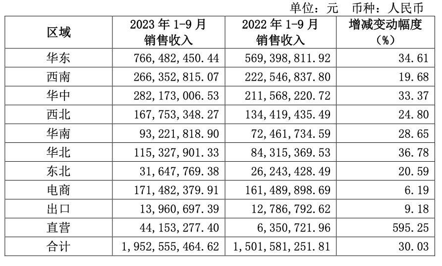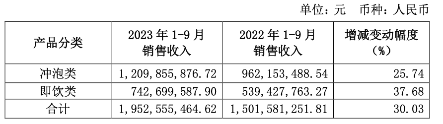 香飘飘食品股份有限公司第三季度财报显示,前三季度公司实现营收19.79亿元,同比增长29.31%;净利348.39万元,扭亏为盈。其中,第三季度实现营收8.08亿元,同比增长20.41%;实现净利4752.65万元,同比减少12.29%。值得注意的是,尽管香飘飘第三季度营收实现了20%以上的增长,但净利润却同比减少12.29%。究其原因,是因为营业总收入跟不上营业总成本的增长所致。财报数据显示,相比2022年第三季度的6.71亿元,2023年三季度香飘飘总营收增长了1.37亿元至8.08亿元。与此同时,营业总成本也由2022年第三季度的6.12亿元同比增长24.46%至7.61亿元,同比增加1.49亿元。其中,销售费用增长迅猛,同比增长101.89%至2.09亿元。对比近几个季度的销售费用可以发现,从2022年第三季度开始,香飘飘的销售费用呈上升趋势。2022年第三季度,公司销售费用为1.04亿元,第四季度为1.69亿元。2023年前三季度的销售费用则分别为1.82亿元、1.83亿元和2.09亿元。作为一家主营奶茶饮料产品研发、生产和销售的公司,成立于2005年的香飘飘2017年11月30日登陆上交所,成为国内“奶茶第一股”。不少消费者都对它“一年卖出奶茶的杯子连起来可绕地球一圈”的广告语印象颇深。但随着消费市场特点的变化,香飘飘在冲泡产品业务之外,又新增了即饮产品业务,定下了冲泡+即饮双轮驱动的策略,并将即饮业务作为公司的第二增长曲线。财报显示,前三季度,冲泡类销售额约为12.10亿元,同比增长25.74%。即饮类销售额为7.43亿元,占比38.04%,同比增长37.68%。第三季度,冲泡类营收为5.83亿元,同比增长14.5%;即饮类营收为2.16亿元,同比增幅达到了42.3%。从渠道来看,经销商渠道仍然是香飘飘的销售主力。前三季度,经销商渠道销售额达到了17.22亿元,同比增长30.43%。香飘飘的自营渠道则贡献了最大增速,其同比增幅达到了595.25%。但总体来看,自营渠道的销售额规模仍然较小,仅有4415.33万元,仅占总销售额的2.26%。按地域来看,华东仍然是香飘飘最大的消费市场,销售额达到了7.66亿元,占比39.26%。经销商增幅也以华东地区最为明显。截至报告期末,公司共有经销商1502家,较今年上半年净增83家,较年初净增170家。其中,华东区新增经销商155个,净增104个。香飘飘近日接受机构调研时表示,第四季度,公司的冲泡业务将进入旺季,目前,公司正全力做好旺季的准备工作。