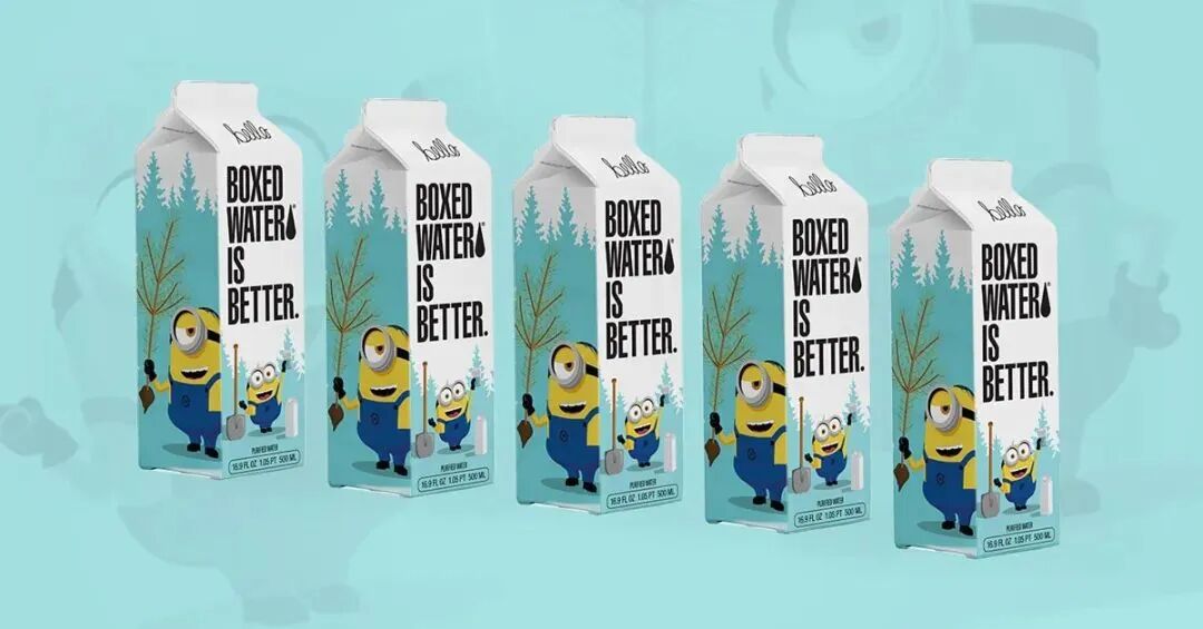 近日,Boxed Water与Universal Products&Experiences合作,推出了限量版小黄人主题盒装水。据介绍,该款盒装水纸盒采用三种不同的设计,分别为小黄人凯文、鲍勃和斯图尔特种植松树幼苗的形象,官方称其意在突出盒装水在美国各地的植树计划。