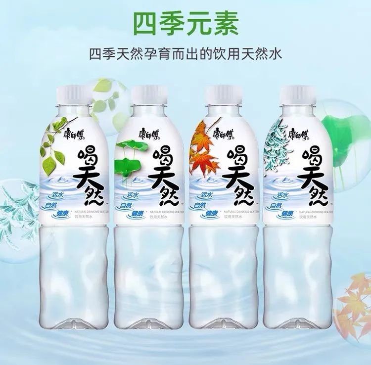 近日,康师傅推出了一款名为“喝天然”的天然饮用水新品,产品取自长白山的青龙泉、黄山的碧山泉、乐山的千佛泉等地的天然优质水源,富含钙、镁、钾、纳、偏硅酸等健康的天然矿物质,包装设计上特别定制了春芽、夏荷、秋枫、冬松“四季瓶”,让消费者“体验四季之美”,零售价为2元。
