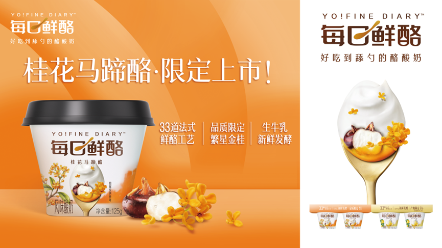 与此同时,新品采用33道法式鲜酪工艺,超滤膜浓缩工艺和法国Ystral动态平滑工艺加工,辅以自有配方,保证酸奶的品质。两种口味分别甄选品质金桂花搭配脆甜马蹄果,产地限定常山胡柚融入丝滑酸奶,带来多层次的味蕾体验。两款新品均在京东平台首发,官方售价125g*8杯/79.2元。