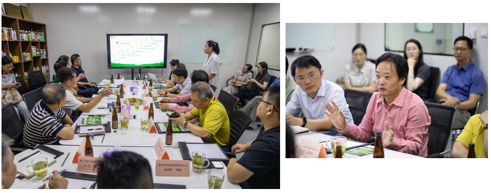 2023年9月5日,中国国际茶文化研究会、杭州市茶文化研究会领导莅临浙江省饮料工业协会,就“如何推动三茶有机茶高质量发展,交流茶与饮料现状,空间和趋势”,展开了深入探讨。此次研讨会在浙大百川生物食品技术有限公司举行。此次参加调研的领导有:中国国际茶文化研究会常务副会长、浙江省人民政府原副省长王建满,中国国际茶文化研究会副会长兼秘书长、浙江省茶文化研究会会长林健东,杭州市茶文化研究会会长杭州市人民政府原副市长何关新,中国国际茶文化研究会学术与宣传部负责人、杭州市纪委原常委、杭州市委巡察工作办公室原主任胡飞龙,杭州市茶文化研究会副秘书长兼办公室主任官少辉,中国国际茶文化研究会办公室副主任、浙江华韵职业技术学校副校长梁婷玉。参加研讨的专家有浙江工业大学食品科学与工程学院党委书记孙培龙,浙江省农业科学院蚕桑与茶叶研究所茶学科带头人刘政权,浙大茶学系研究员博士生导师楚强。浙江省饮料工业协会会长及副会长单位杭州娃哈哈集团有限公司、农夫山泉股份有限公司、浙江省茶叶集团股份有限公司、杭州浙大百川生物食品技术有限公司、康师傅杭州顶津食品有限公司、浙江博多控股集团有限公司相关负责人参与了此次座谈。![]()