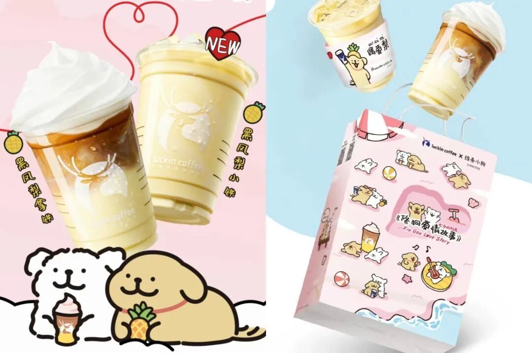 4、瑞幸咖啡联名线条小狗推出七夕「黑凤梨」系列新品