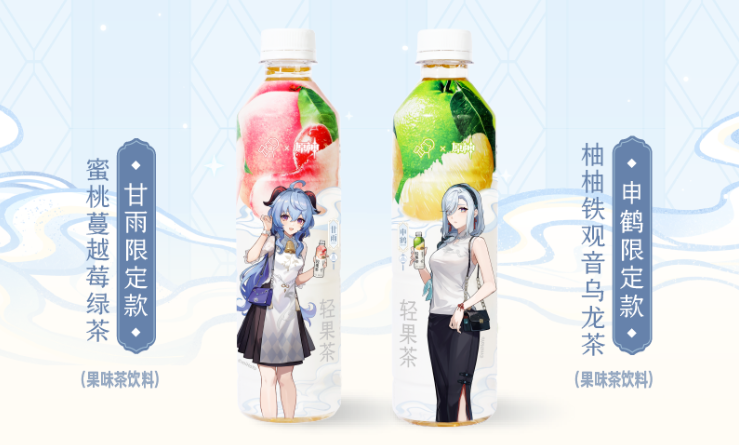 继8月11日与原神联名推出两款限定新品后,喜茶将于8月21日上新联名限定轻果茶。据官方介绍,此次联名限定款轻果茶有两款,甘雨限定款为蜜桃蔓越莓绿茶,而申鹤限定款为柚柚铁观音乌龙茶(甘雨和申鹤为原神中角色)。官方表示,两款轻果茶都是低糖低卡零脂。据悉,该款联名轻果茶将上线便利店及电商渠道,可于线上购买。![]()