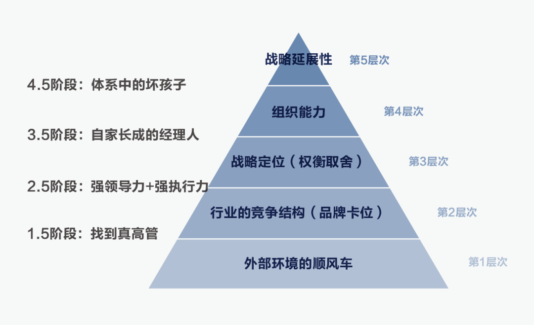 回看两三年前,很多值得尊敬的企业都是一时风头无两,但倒在了2023年的春天。他们并没有输给竞争对手,而是输给了自己;并没有失败在战场上,而是真正输在了指挥室里。背后终究都是人和组织的问题,许多企业到不了3.5阶段,是因为1.5、2.5阶段的任务没完成。
