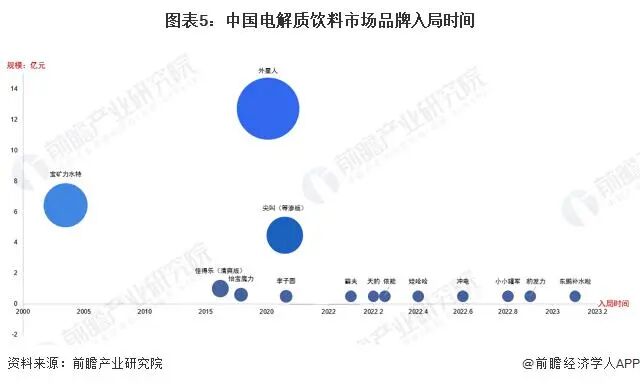2020 年以前,市面上主打电解质水的品牌较少;2020 年以来,随着疫情爆发,居民健康意识和需求提升,电解质水概念进入大众视野,各企业 " 闻风而动 ",纷纷布局电解质赛道,如近两年名声大噪的外星人电解质水就是 2020 年下旬推出的。2022 年 12 月,国内大规模感染新冠,更是将电解质水推上 " 高峰 ",仅一个月就诞生了 " 东鹏补水啦 "" 冲电 "" 小小罐军 "" 豹发力 " 多个品牌。