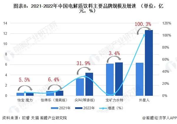 2022 年电解质饮料市场快速发展,同比增速达 50%