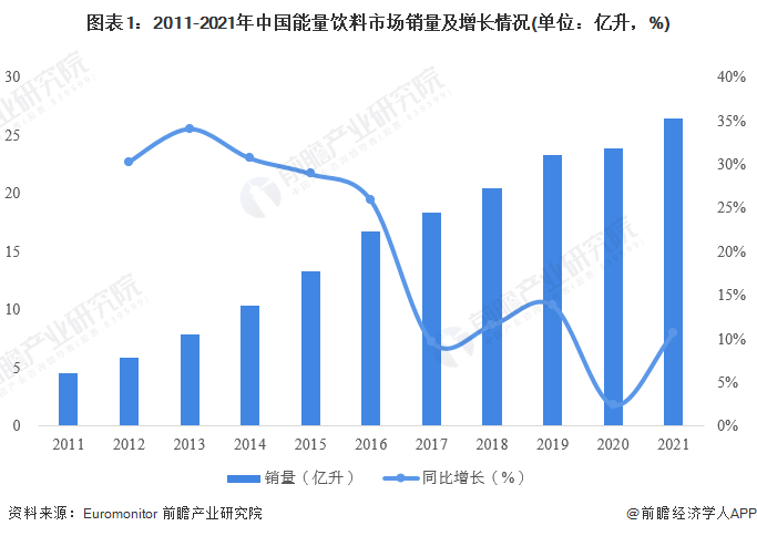 中国能量饮料销量超26亿升中国能量饮料市场起步晚,但发展迅速。2011-2021...