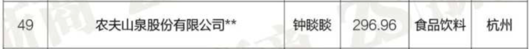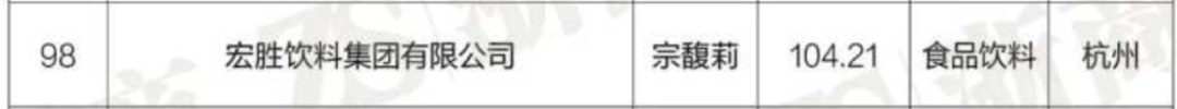 此外,农夫山泉以296.96亿元营收上榜,宏胜饮料以104.21亿元营收上榜。