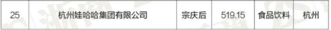 其中,娃哈哈集团以去年营收519.15亿元上榜,位居榜单第25位,也是浙江食品饮料制造业之首!
