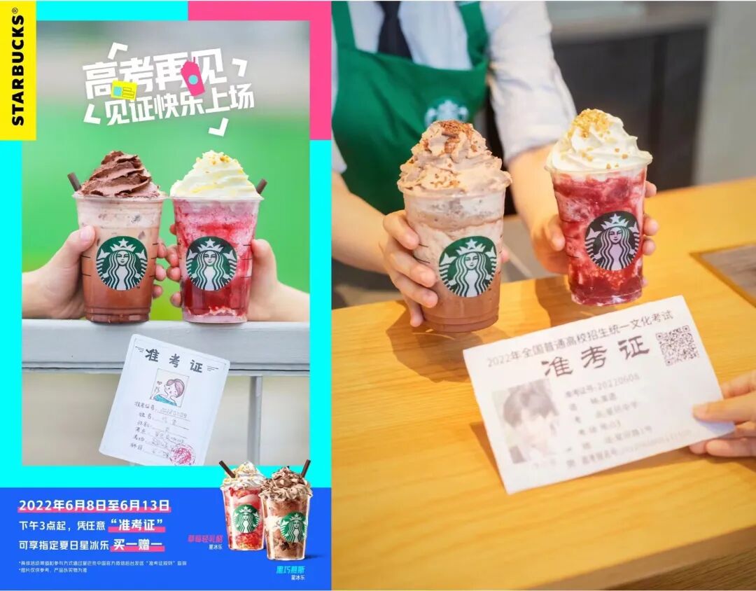 星巴克继去年在全网引发一阵准考证DIY风潮后,今年星巴克如法炮制,直接向大众喊话:正式的、手绘的、搞笑的,不限形式的“准考证”都可以换一杯星冰乐。