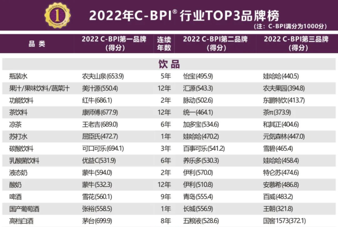 2022年中国品牌力指数发布,饮料行业13个细分品类排名抢先看!