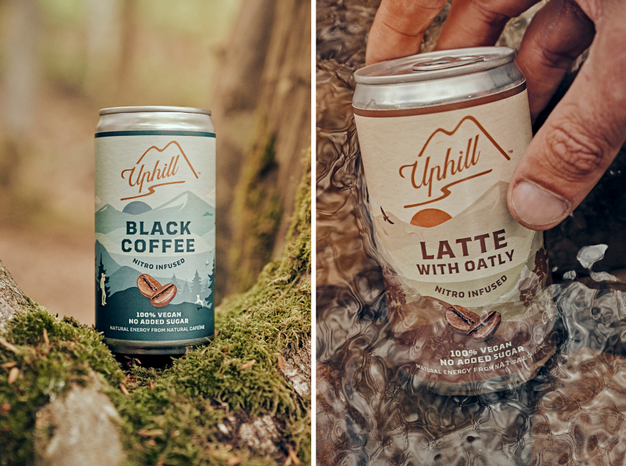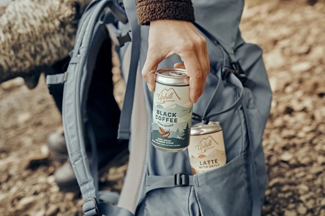 Uphill这款即饮咖啡以易拉罐的形态呈现,插画以户外的大自然元素为主,高山、森林、沙漠、落日,营造着轻松、活力的氛围,也在暗示着咖啡引用场景的多元,不仅在家中,即使在户外探险,这款咖啡也非常适合成为你补充能量的必备物资。罐身清晰可见的咖啡豆图案点缀其中,更是呈现了咖啡豆的新鲜以及与大自然的紧密结合,光是看图,仿佛已能闻到咖啡的醇香~