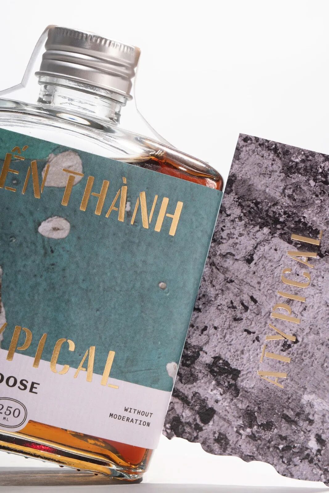 VAT LIEU CAFFE来自越南。这款咖啡的灵感诞生与工人群体息息相关。在瓶身的标签左侧可以看见蜜蜂状的标志,寓意“工蜂”,设计者将工蜂比作工人,而与啤酒瓶身相仿的咖啡瓶身也是在阐释设计者试图提供一款适合工人群体的简单、放松的咖啡。这款包装设计的图案以及配色的选用皆来自工地上能看到的各种材料——信号板、塑料帆布等,更加凸显了品牌想要传递的设计理念。