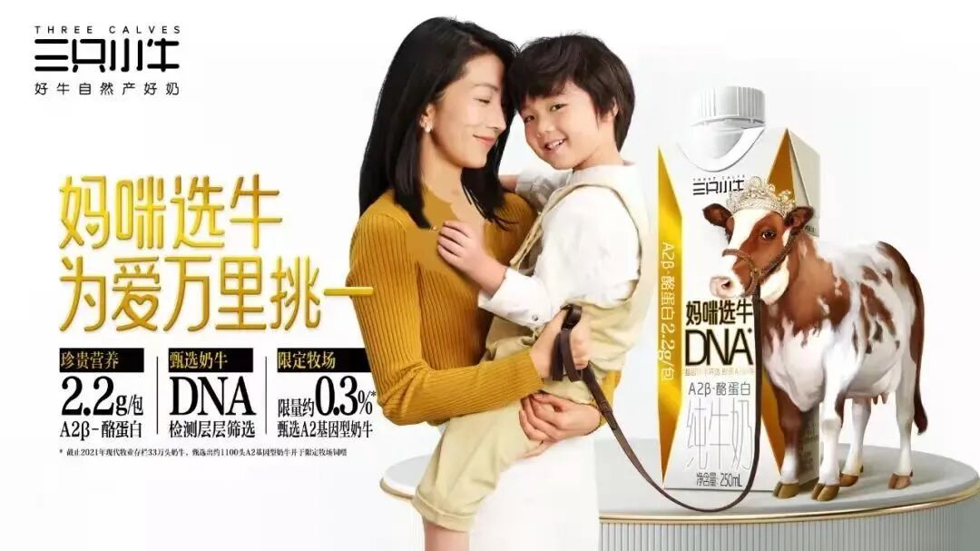 定位中高端功能奶,12月16日,现代牧业官宣推出旗下首个子品牌“三只小牛”,且同步上线了“妈咪选牛”系列重磅新品——DNA A2β-酪蛋白纯牛奶和睡前30分钟A2β-酪蛋白牛奶饮品两款。其中,前者面向精致宝妈、悦己女性以及泛家庭人群,强调DNA基因技术筛选,每包250mL含2.2g A2β-酪蛋白;另一款产品则锁定睡眠场景,添加GABA助眠因子,每250mL约含307mg。