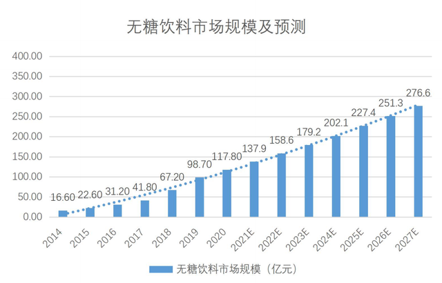 国内无糖饮料市场规模预计5年内翻番