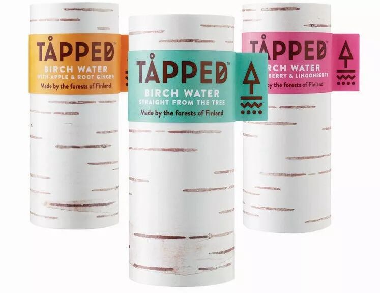 英国有机桦树水品牌Tåpped于2015年推出桦树水,当年累计销售额超过了25万英镑。原料取自芬兰桦树林,每罐250ml,包装如桦树树干,小巧、直观、醒目。