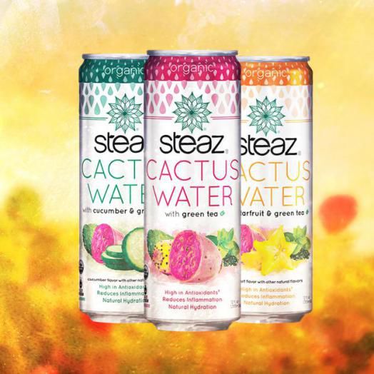 Steaz仙人掌水是一种新的有机中卡路里非碳酸饮料系列,包括刺梨汁和绿茶。饮料中含有五种天然存在的电解质、维生素和矿物质,有助于水合作用,适合运动员和注重健康的人。