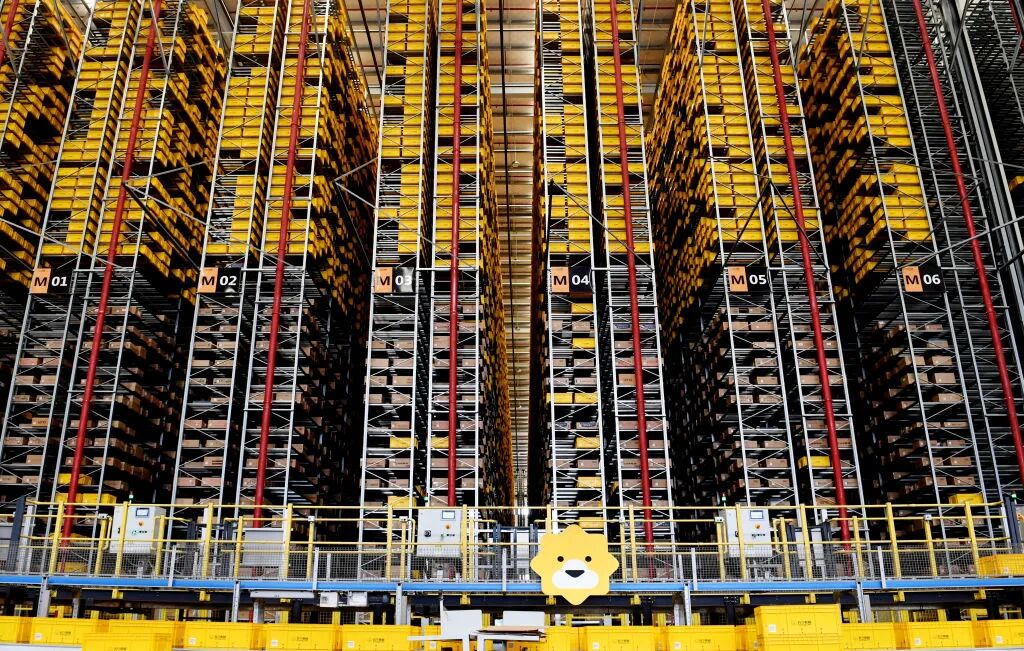 618购物节前,快递包裹堆放在电子商务巨头苏宁的物流基地。