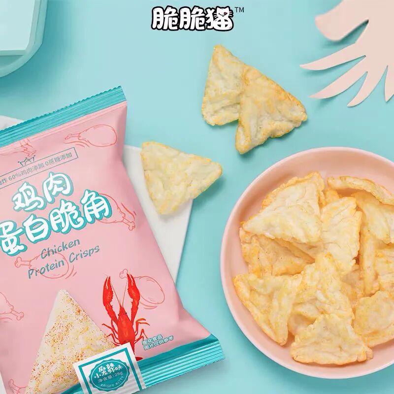 近日,休闲食品品牌脆脆猫近日推出新品,脆脆猫脆片系列。新品系列主要包括4个产品:彩虹蔬菜米饼、藜麦蛋白脆片、美式玉米脆角和鸡肉蛋白脆角。