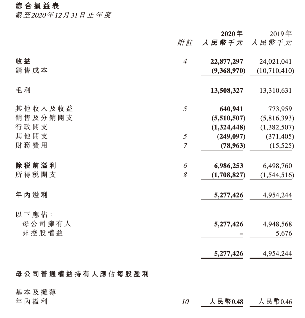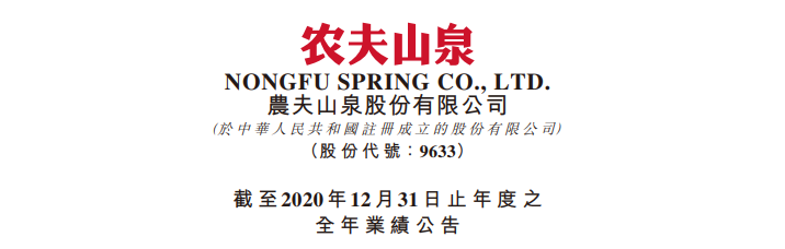 农夫山泉发布上市后首份年报:2020年全年营收228.77亿元 净利润52.77亿元