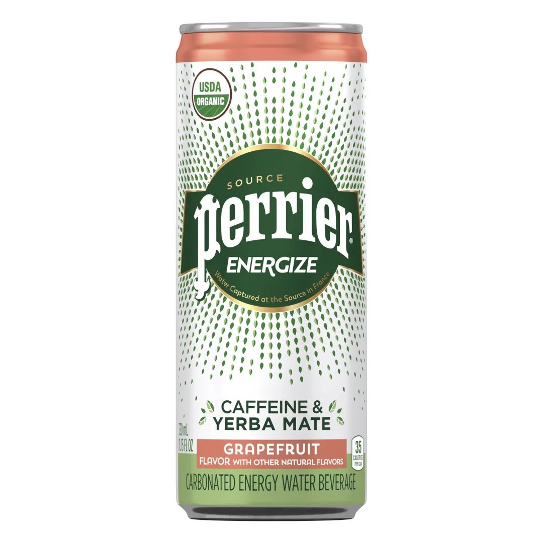 Perrier推出了其首个碳酸能量饮料系列Perrier Energize。这款饮品使用了从绿咖啡和马黛茶提取物中提取的植物性咖啡因,其咖啡因含量相当于一杯8盎司的咖啡。