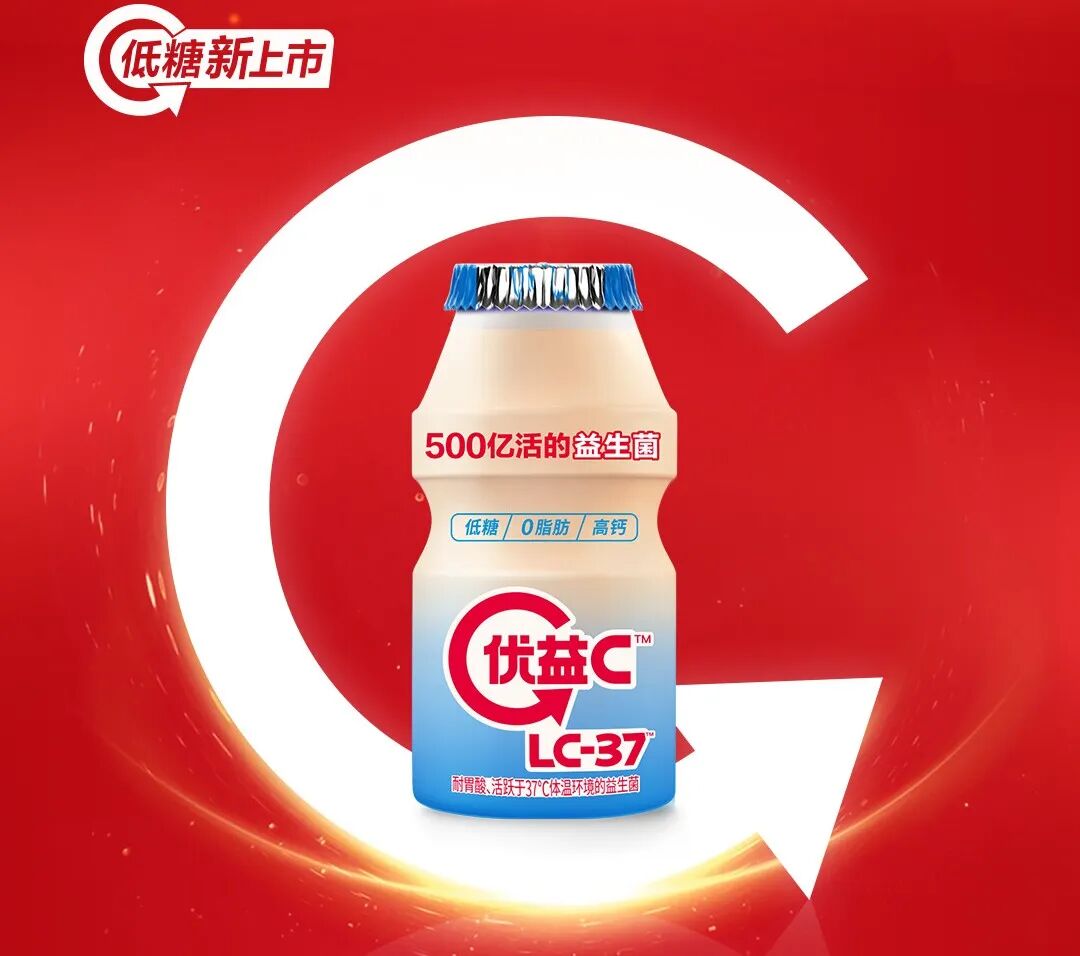 1月16日,蒙牛优益C推出低糖新品。优选LC-37菌种,耐胃酸,在37度体温环境下焕发强活性。每百毫升含500亿活菌,高于国家标准500倍,远高于普通乳酸菌饮品的标准,0脂肪低糖高钙。家庭餐后、健身撸铁、久坐不动等场景,适合饮用。