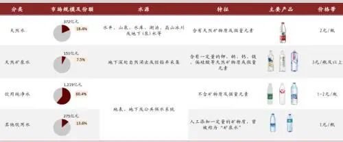 注:市场规模及份额数据为2019年数据 天然矿泉水有别于其它类型的瓶装水。