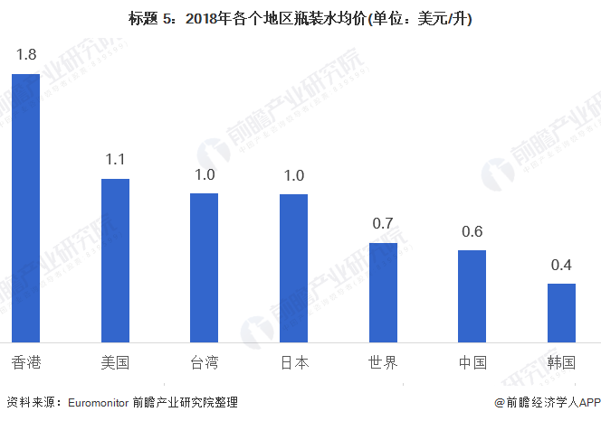 根据Euromonitor数据显示,2010-2018年,中国瓶装水单价持续提升,2018年,中国瓶装水单价为4.1元/升,即约为2元/瓶(假设单瓶容量为500ml)。但对标台湾、日本等地区瓶装水均价,仍有60%左右提升空间。