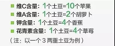 土豆与部分水果蔬菜的营养价值对比