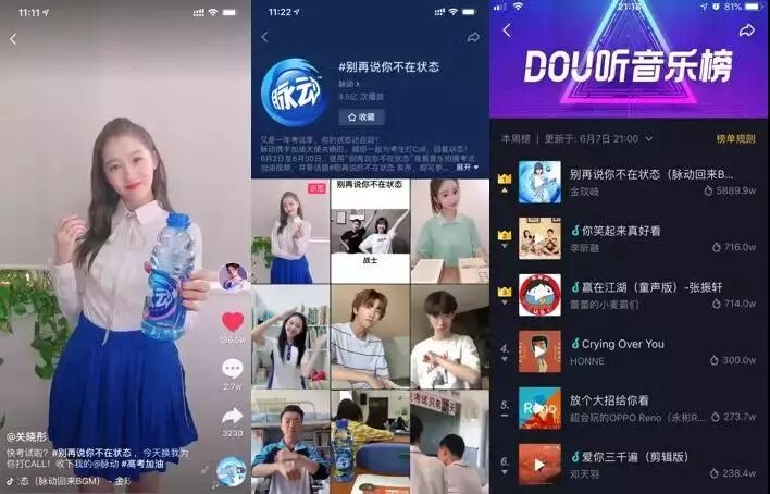 从网易云音乐、抖音、微博、知乎四大年轻人喜欢的新媒体平台大规模轰炸,再到关晓彤、张雪迎等六位脉动邀请的明星学长学姐,以及高三名师、心理学家轮番上阵鼓劲……脉动通过备考励志神曲、人气明星打气、全民加油话题等助力高考,可谓赚足了人气。