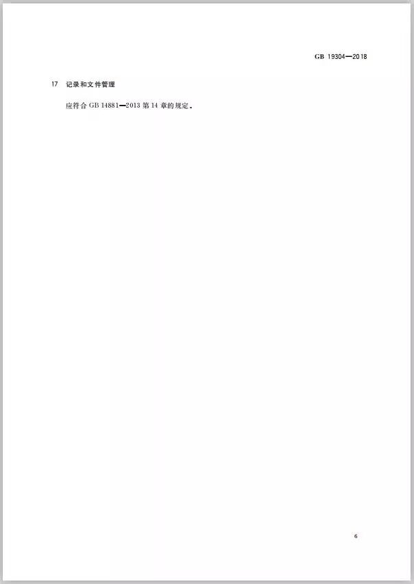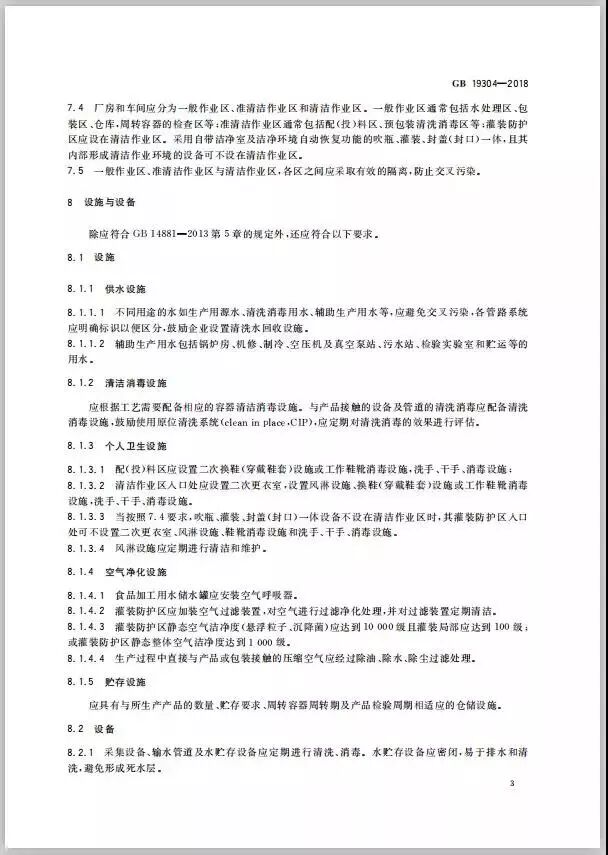 新标准2019年6月21日(今天)正式实施 GB19304-2018《食品安全国...