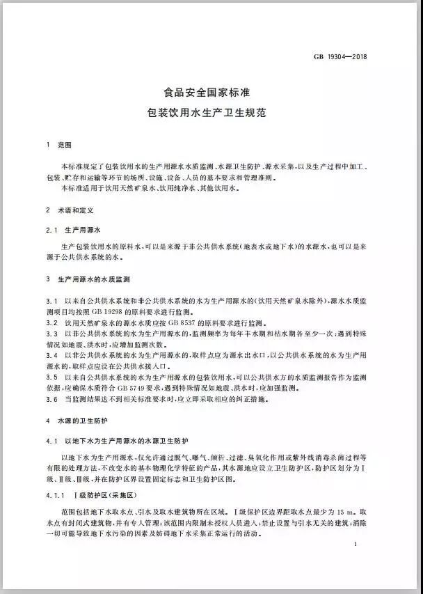 今天实施|GB19304-2018《食品安全国家标准包装饮用水生产卫生规范》