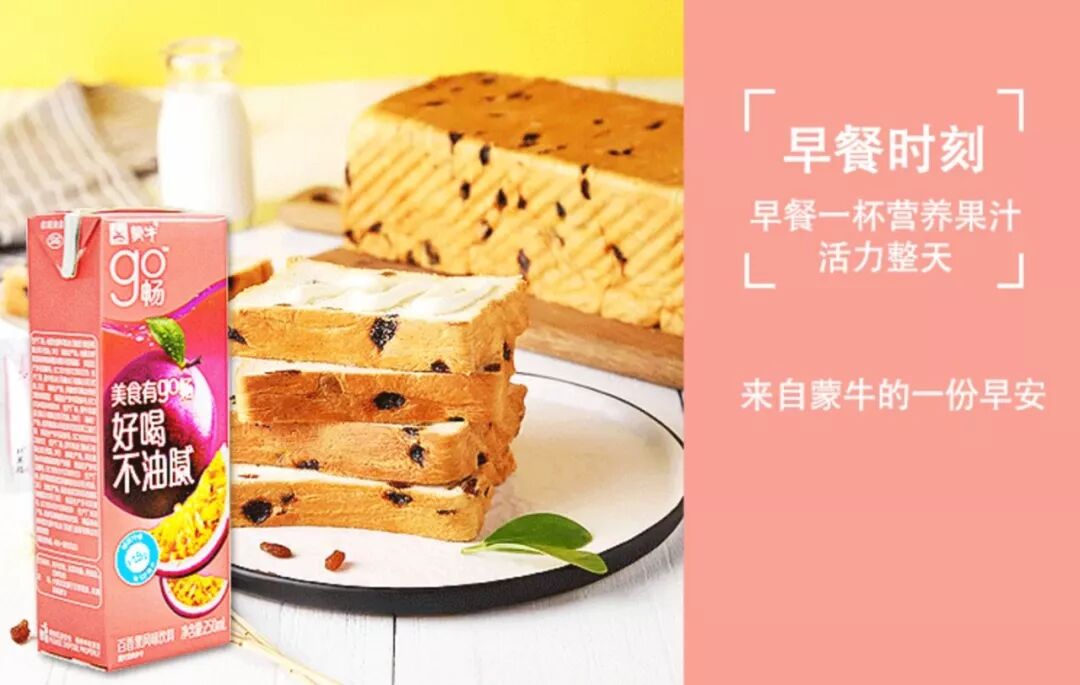 近日,蒙牛新推出了一款go畅百香果风味饮料,每100ml中含有超过1.5g的膳食纤维,浓缩百香果汁的添加量大于等于500mg/100ml,以“美食有go畅,好喝不油腻”为主打口号。