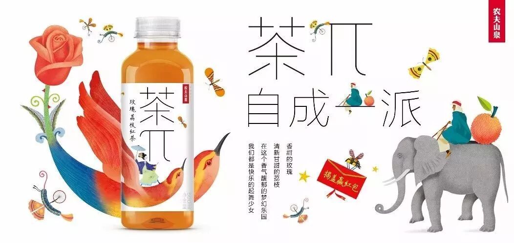 2016年3月,茶π横空出世,时尚的瓶型设计,想象力十足的包装插画和符合年轻人需求的清爽口味,让这款新产品在上市之后迅速地在饮料货架上琳琅满目的茶饮产品中脱颖而出,16年就实现了“10个月10个亿”的销售神话。