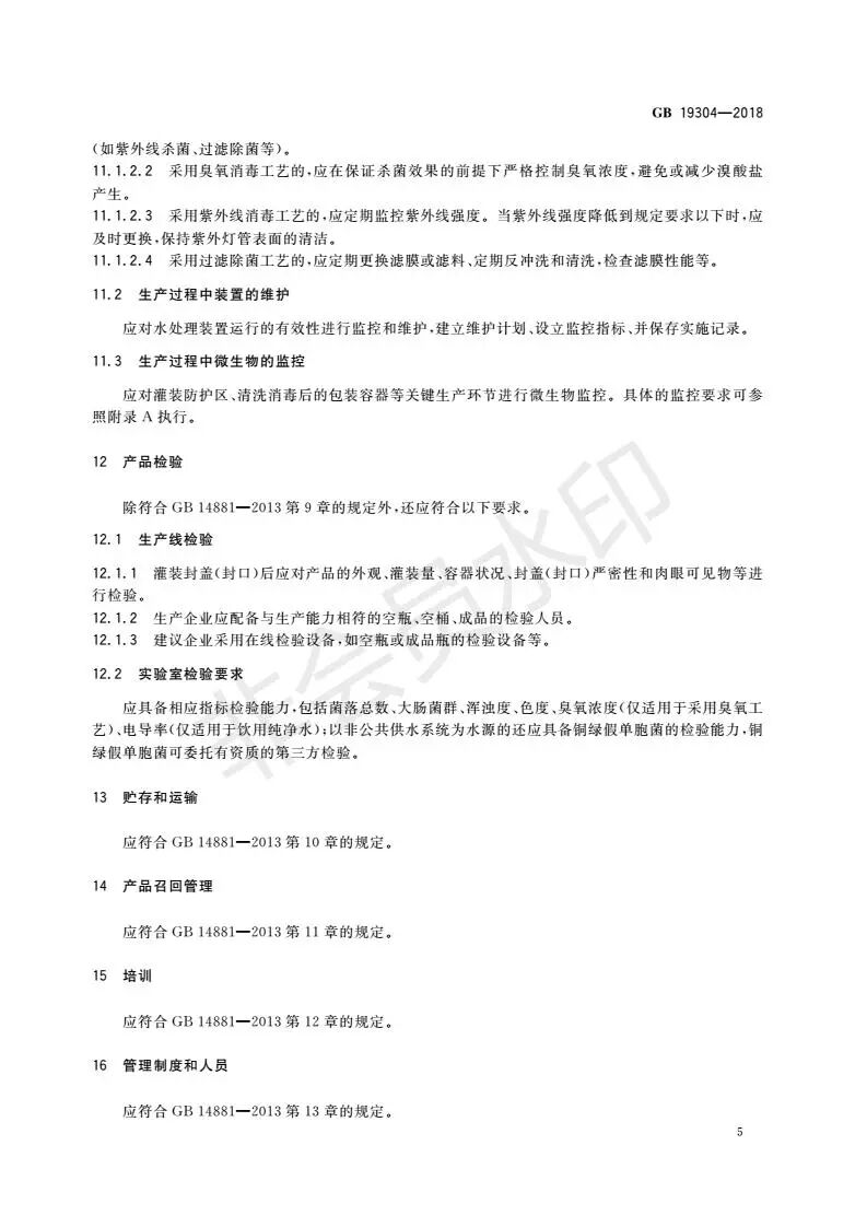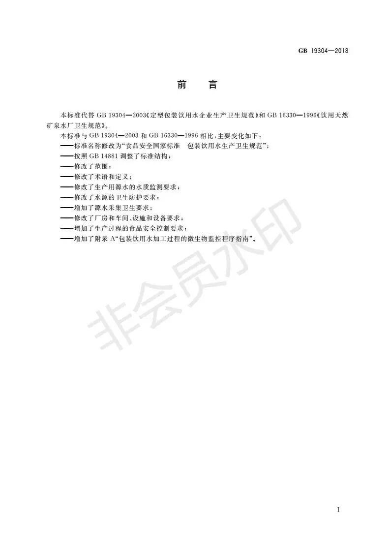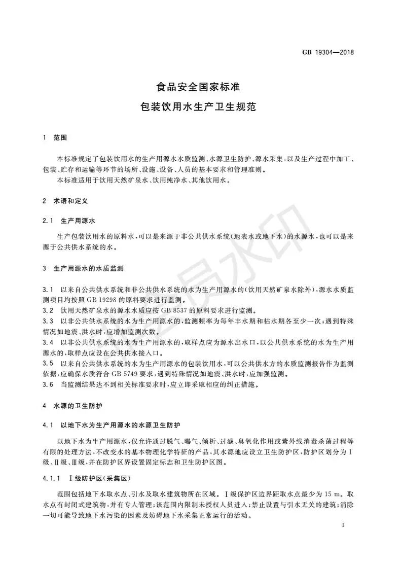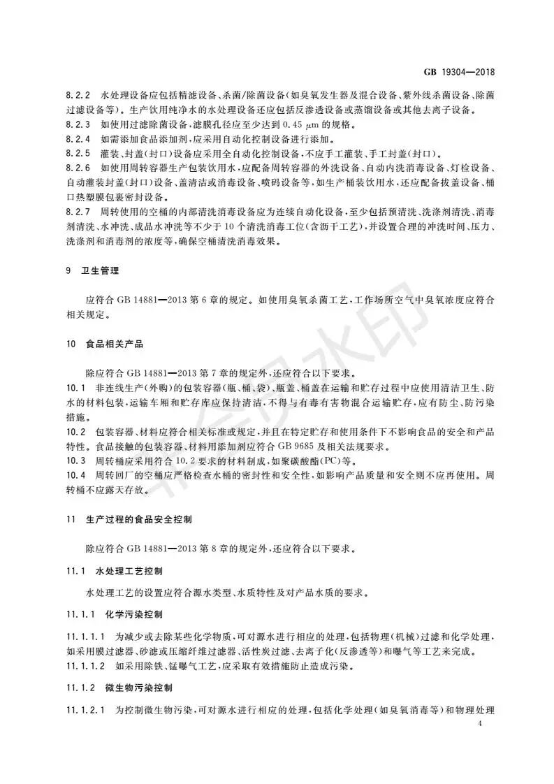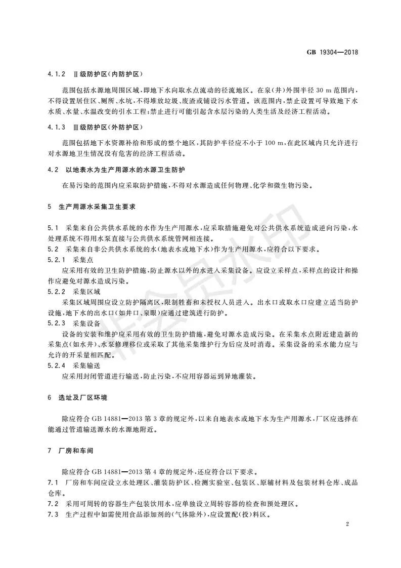 GB-19304-2018食品安全国家标准包装饮用水生产卫生规范