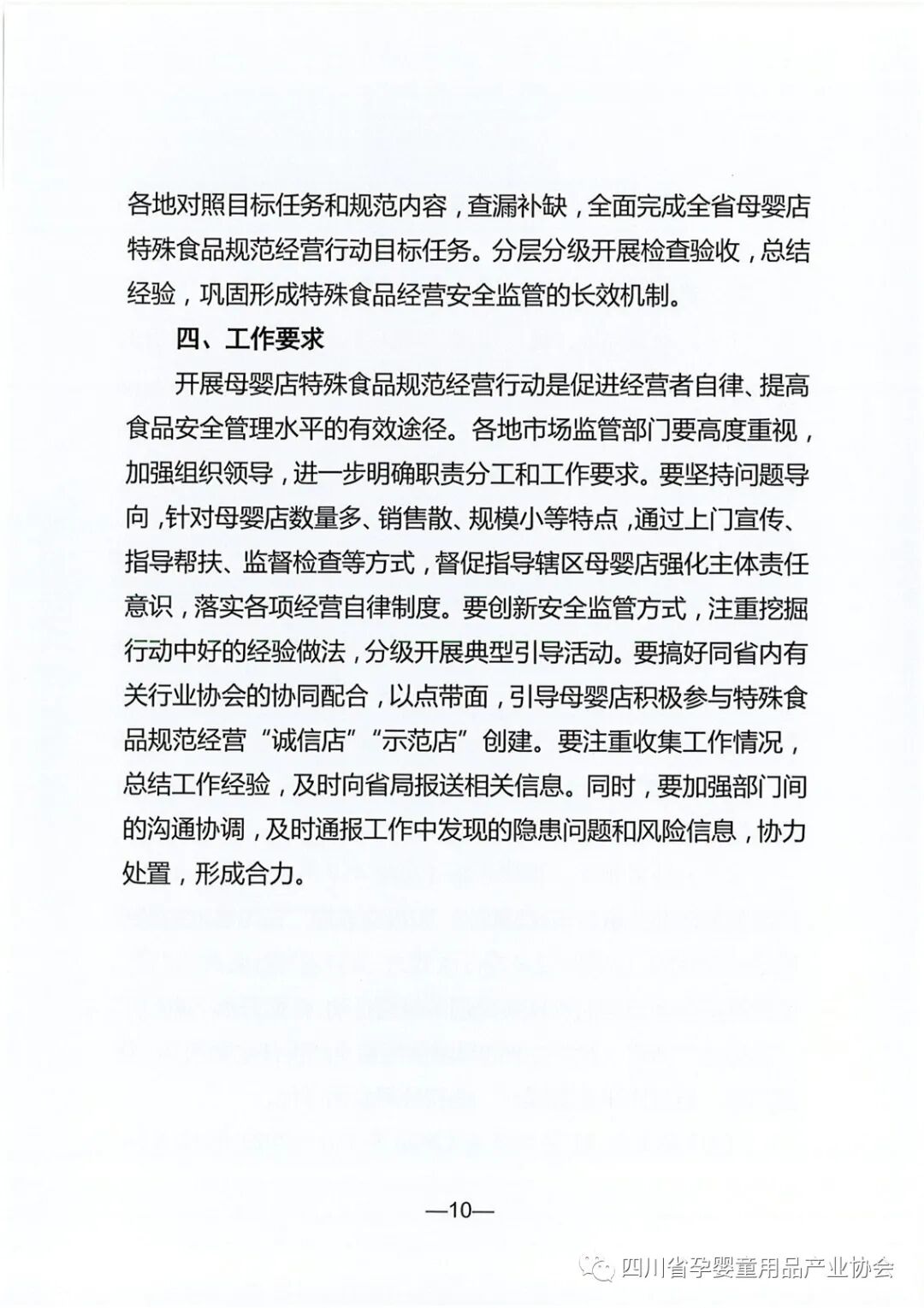 按照四川省市场监督管理局关于开展母婴店特殊食品规范经营行动的指导思想和工作部署,四川省孕婴童用品产业协会将积极履行作为四川省孕婴童行业社会组织的重要职责,充分结合协会众多会员单位是各地市母婴店连锁头部企业的独特优势,认真引导、督促和帮助母婴店履行企业主体责任、全面深入加强特殊食品规范经营。
