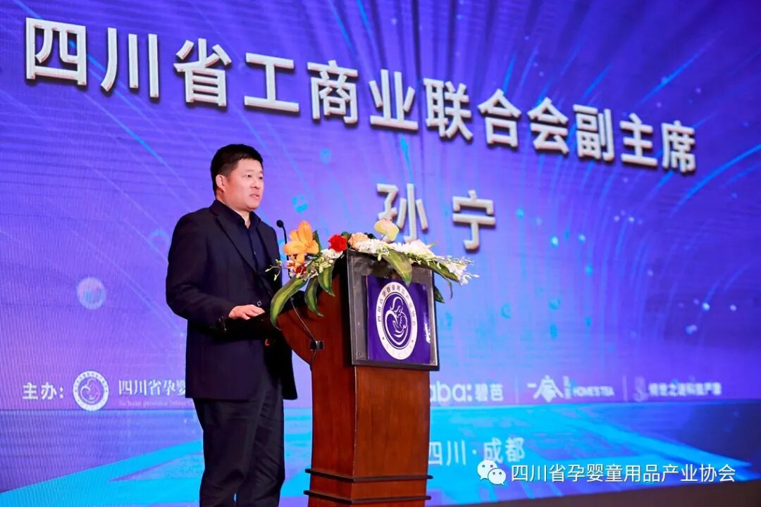 孙宁副主席在会上发表了重要讲话。他首先对协会一年来的工作予以了肯定并预祝本次会议取得圆满成功。他表示:一年来,四川省孕婴童用品产业协会在政治上立场坚定,积极推动各项工作,面对困难局面引导和带领会员企业逆势而上、抱团取暖、合力前行,协会为会员单位真诚服务、阳光服务,会员企业积极防疫抗洪、勇于担当,整个行业坚定前行、积极向上,整体工作成效突出。孙宁副主席强调:2021年是十四五规划开局之年,是中国共产党成立100周年,为了帮助大家把握形势,更好地抓好协会工作和企业经营,有几点建议与大家分享。一是协会和成员企业要高举旗帜,坚定引领;听党话,跟党走,学习党的伟大精神和先进制度,并将其融入企业文化、指导发展。二是把握大势、理清思路;找出做强做大的路径,投身一带一路、双循环战略,把优质产品提供给人民。三是研究政策,抓住机遇;孕婴童行业是服务、家庭、安全的重要一环,要充分抓住国家和四川省对现代服务业高度重视的机遇,要研究政策、用好政策,助推企业发展。四是要建立平台,赋能发展;要互相赋能借力,推进发展,要有并购理念、上市思维,借助资本的力量,全力抱团求发展,要把制造业、物流、数字经济、区块链对接起来,促进我省孕婴童产业建设上台阶。五是打造品牌,提升价值,培育发展四川省孕婴童领域的知名产品品牌、连锁品牌。孙宁副主席最后表示:工商联是民营企业的家,大家有需求及时通过协会与工商联对接,我们将真诚地为大家做好服务工作,一路陪伴前行,共同努力把四川孕婴童产业发展好,把四川孕婴童行业建设强。