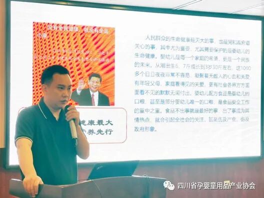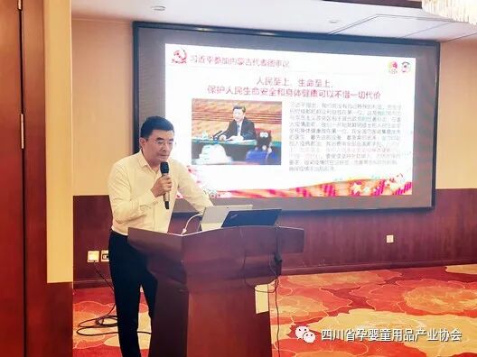 四川省孕婴童用品产业协会第一届理事会第七次会议于2020年6月28日在成都召开,协会会长李西平,副会长汪海涛、胡兴明、曾德滨等领导出席,有关理事(监事)参加。应协会邀请,四川省市场监督管理局特殊食品处四级调研员苟景全同志专程参加会议并宣讲政策法规。