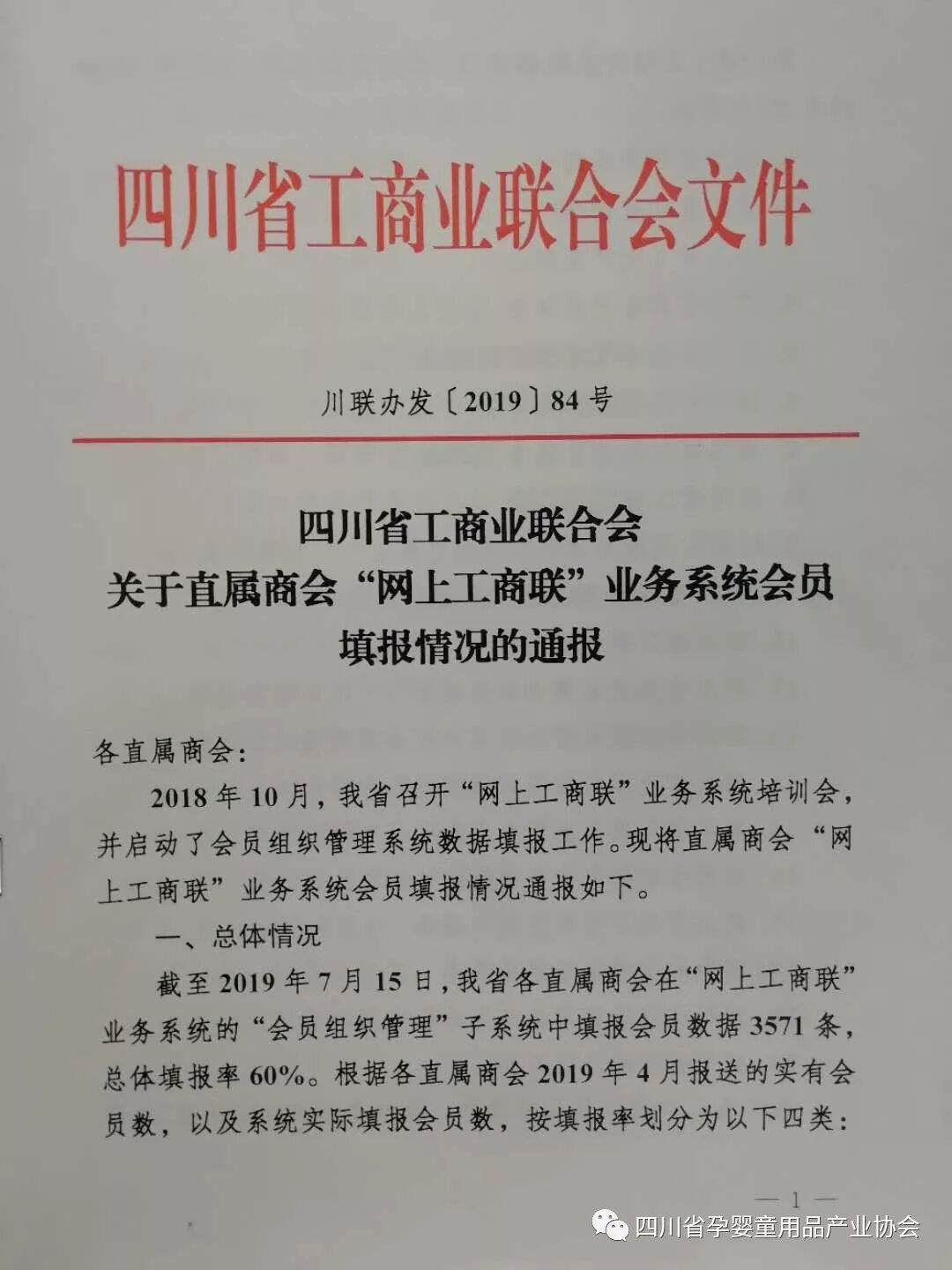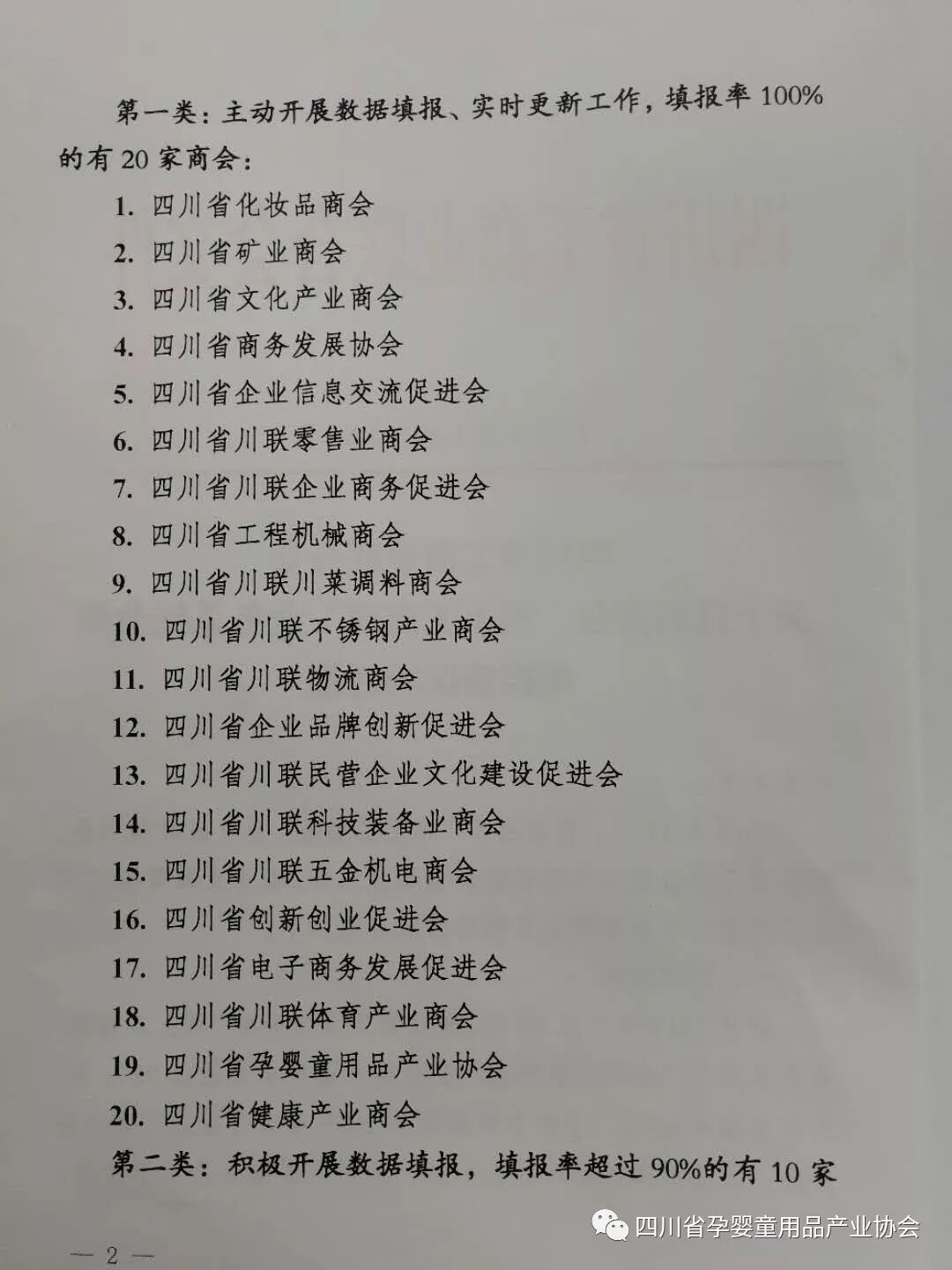 应省工商联部署安排,我会秘书处积极响应,主动开展数据填报,百分百完成填报工作。获评为第一类(主动开展数据填报,实时更新工作,填报率100%)的20家直属商会之一,得到“免交2019年度会费,并将在2019年度评先评优中优先考虑”的奖励(川联办发【2019】84号文件)。