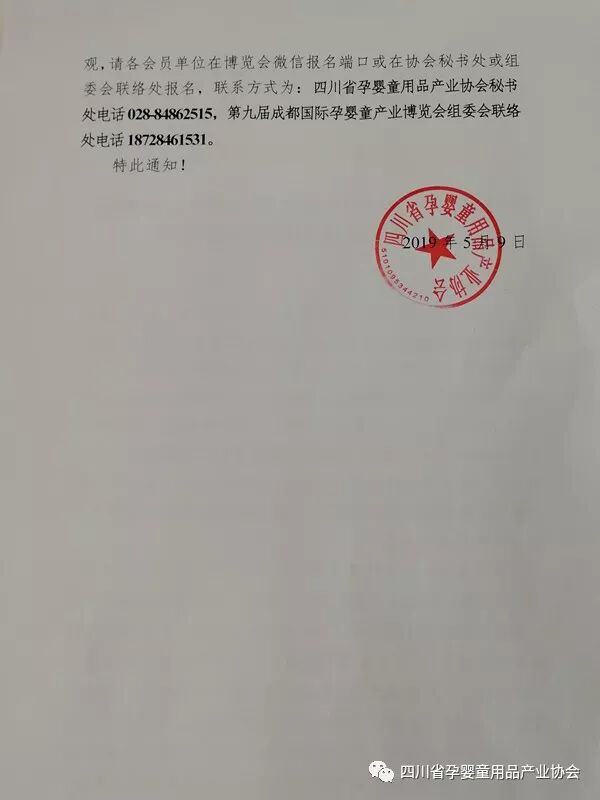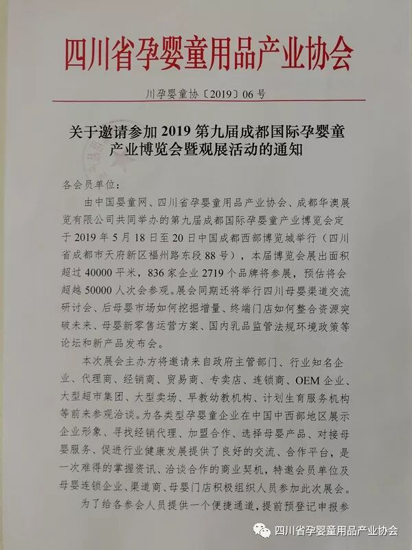 关于邀请参加2019第九届成都国际孕婴童 产业博览会暨观展活动的通知