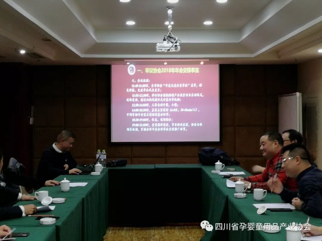 2018年12月22日,四川省孕婴童用品产业协会第一届常务理事会2018年第二次会议在成都召开,协会会长李西平、副会长陈跃、汪海涛、江大兵、杜咏、胡兴明、马晓雷、平彪、杨林、焦照杰参加会议,协会秘书长勾阳报告工作。